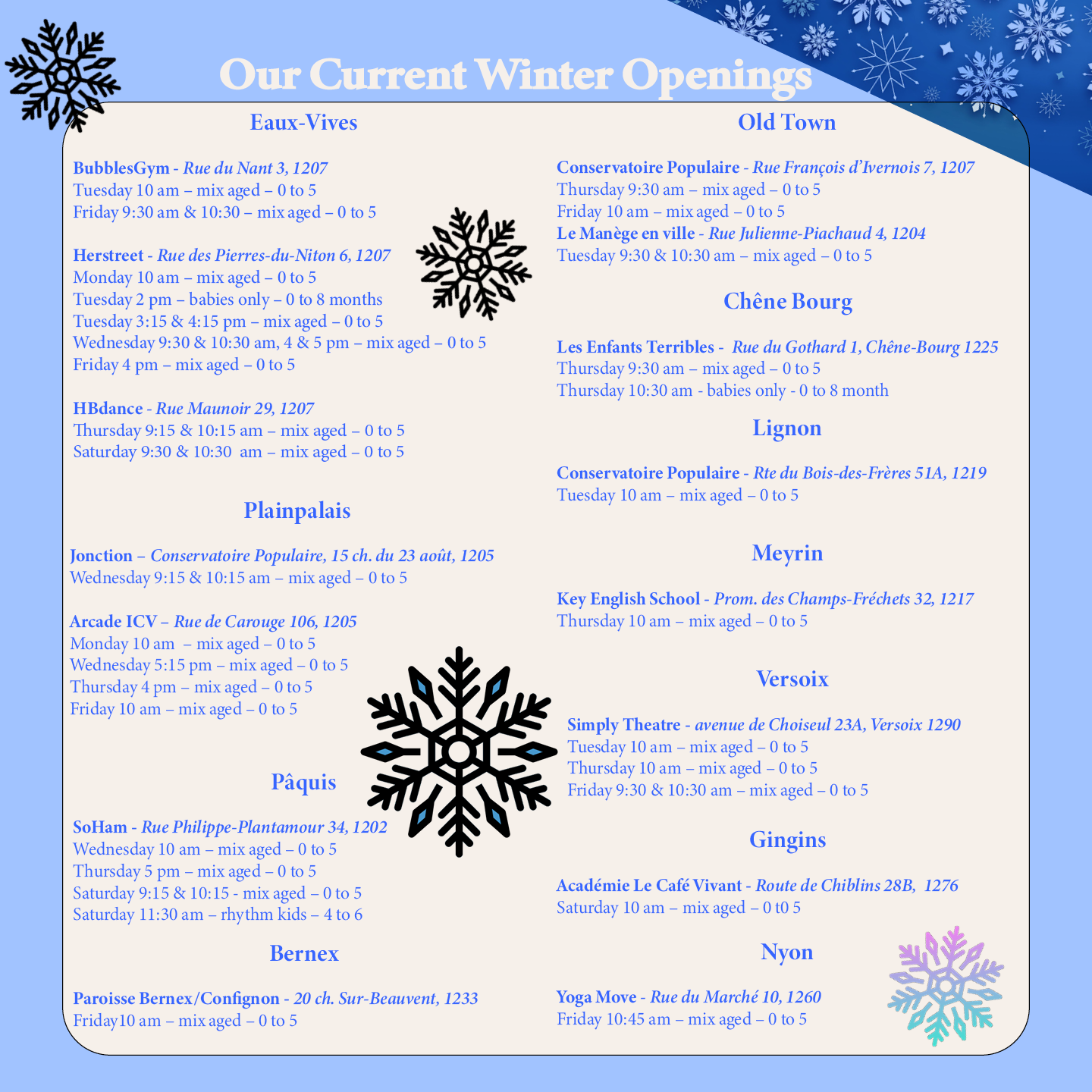 Friday & Saturday: CHF 300 for the first child (10 classes)